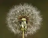 Плод — серовато-бурая веретенообразная семянка с хохолком, состоящим из белых неветвистых волосков. Семянки прикреплены к цветоложу непрочно и легко разносятся ветром.