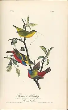 Проведя некоторое время в Манчестере[90], Одюбон отправился в Эдинбург[1][92], где друзья познакомили его с гравёром Вильямом Лизарсом[2], который уже занимался публикацией орнитологических работ. Несколько дней Лизарс рассматривал акварели Одюбона, акцентируя внимание на крупных птицах, и после портрета сапсана (Falco peregrinus) принял решение о публикации[93][94]. Одюбон и Лизарс достигли соглашения в ноябре 1826 года, но за несколько месяцев было готово только десять изображений, качество которых не удовлетворяло Одюбона[59]. Весной 1827 года он отправился в Лондон, где получил сообщение о забастовке работников мастерской Лизарса. В поисках нового гравёра он встретился с Робертом Хэвеллом-старшим[2] (Robert Havell Sr) и его сыном, Робертом Хэвеллом-младшим (Robert Havell Jr)[95][96]. С помощью последнего были созданы четыре тома «Птиц Америки»[1], так как Хэвелл-старший ушёл на пенсию в июне 1828 года[97].
