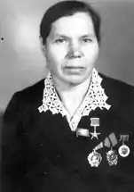 - Награждена орденами Ленина (1971), Трудового Красного Знамени (1966), медалями.