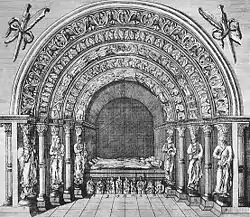 Гравюра несохранившейся до наших дней гробницы Ожье Датчанина в церкви св. Фарона, Мо.