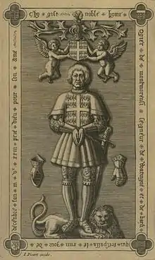 - Père Anselme. Histoire généalogique et chronologique de la maison royale de France. T. III. — P.: Companie des Librairies, 1728, p. 593