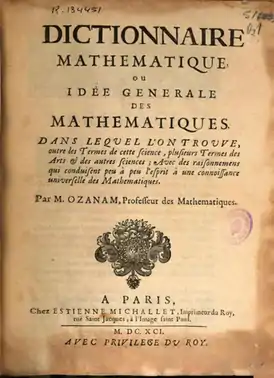 - 1690: Математический словарь (Dictionnaire mathématique).