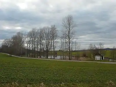- на юге — Хумпрехтзау (община Бад-Виндсхайм) (нем. Humprechtsau) с высотой до 330 м и