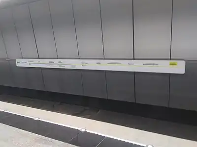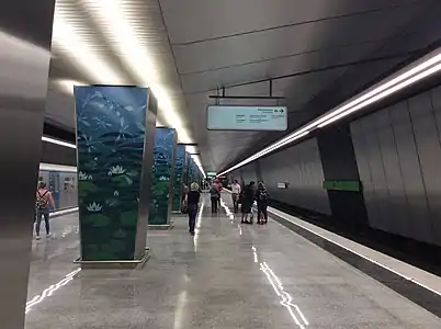 - Август 2017 года: отделка платформы и потолка завершена, заканчивается монтаж декоративных металлокерамических панелей на колонны, монтируются рельсы[11].