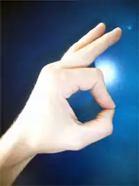 Для невербальной передачи смысла слова ОК в Америке используется особый жест — пальцы поднятой кисти почти выпрямлены, а большой и указательный касаются подушечками, образуя кольцо (букву О). Однако этот жест может быть воспринят как оскорбительный в Бразилии. Похожее сложение пальцев у них обозначает приглашение к половому акту в качестве пассивного партнера.