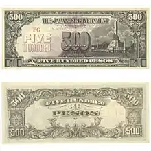 10 декабря 1941 года японские войска высадились на острове Лусон, а 2 января 1942 года взяли Манилу. В ходе Филиппинской операции японцам досталось порядка 20,5 миллионов американских долларов, а также огромное количество другой иностранной валюты и драгоценных металлов. Конфисковав всю твёрдую валюту, японцы использовали её для закупки стратегических материалов на международном рынке, для замены же её на местном рынке были выпущены оккупационные деньги, имевшие то же наименование, что и заменённая ими местная валюта. В 1942 году выпускались банкноты номиналом 1, 5, 10 и 50 сентавос, а также 1, 5 и 10 песо. В 1943 году были выпущены новые варианты купюр номиналом в 1, 5 и 10 песо, а в 1944 году в обращении появились купюры номиналом в 100 песо, а вскоре инфляция заставила напечатать банкноты номиналом в 500 песо. Перед концом войны японцы приступили к выпуску банкнот номиналом 1000 песо.