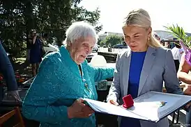 Клавдия Оковитая более 30 лет входит в состав президиума великобурлукского районного совета ветеранов[1][7].