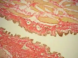 - Окраска красителем Ван Гизона в течение 5 минут.