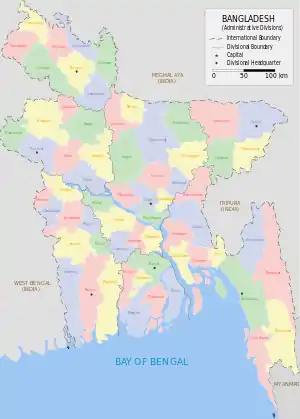 Бангладеш административно подразделяется на 64 округов, или зилов (бенг. জেলা jela). Округа в дальнейшем подразделяются на 493 подрайона, или упазилов (উপজেলা, upojela).