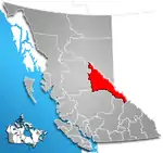 | Балкли-Нечако | Bulkley-Nechako | 5951 | 1966 | 37 896 | 73 361 | 0,5 | Бернс-Лейк, Вандерхуф, Гранайл, Смитерс, Телкуа, Форт-Сент-Джеймс, Фрейзер-Лейк, Хьюстон | [7][8] | ![]() |