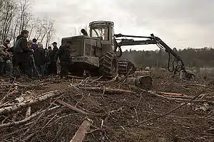 Интенсивные рубки лесов привели к обезлесению во многих частях страны. Несмотря на некоторые попытки российских властей что-то предпринять в этой области, процесс обезлесения все набирает обороты. На северо-западе страны (Архангельская область, Карелия) и на Дальнем Востоке (Забайкальский край, Амурская область, Хабаровский край, Приморский край) очень распространены нелегальные рубки для дальнейшего экспорта сырой древесины в страны Скандинавии и Германию в первом случае и в Китай во втором. По оценкам Всемирного фонда дикой природы, Россия ежегодно теряет около 1 миллиарда долларов из-за нелегального экспорта древесины[8][9]. 16 миллионов гектаров леса ежегодно уничтожаются в результате вырубок, пожаров и загрязнения окружающей среды. Неэффективные рубки приводят к тому, что 40 % срубленных деревьев не используются в дальнейшем. Политика российского правительства в отношении лесов проводится очень медленно и не приносит нужного эффекта[2].