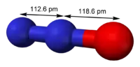Наибольший вклад вносит N-оксидная форма оксида азота(I). Порядок связи N-N оценивается как 2,73, порядок связи N-O — как 1,61. Резонансная структура с возможностью противоположного расположения зарядов в молекуле N2O обусловливает низкий дипольный момент молекулы, равный 0,161 Д.