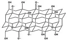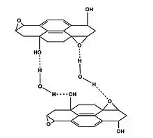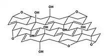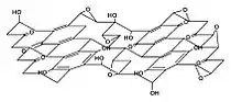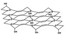 - Ресс предложил другой вариант с использованием гидроксильных групп. Базальная плоскость превратилась из sp2- в sp3-гибридизованную систему. Эта формула была создана как аналог таковой в полимере карбон монофторида.