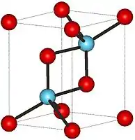 - Кристаллы гексагональной сингонии. Параметры ячейки a = 0,380 нм, c = 0,600 нм[2]. Изоструктурны кристаллам гексагональной сингонии оксида лантана(III). Пространственная группа [4]. Постепенно образуются при комнатной температуре из кристаллов кубической сингонии под действием собственного излучения[1].