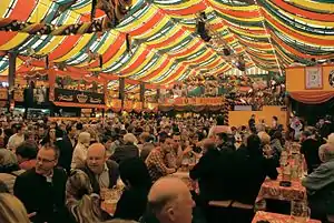 Октоберфест известен на весь мир своими огромными пивными палатками (или пивными павильонами), в каждую из которых помещается до 10 000 человек. Все они из года в год управляются одними и теми же предпринимателями (нем. Festwirt). Часто это семейная традиция, передающаяся из поколения в поколение.