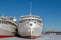 Теплоходы проекта «Президент», «Михаил Танич» (слева) на зимовке в Северном речном порту