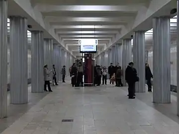 - Лестницы с платформы ведут в подземные переходы под улицей Маршала Бирюзова[5].