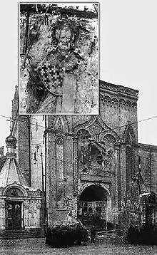 ![]() Малый Николаевский дворец в Кремле, повреждённый артиллерийским огнём во время октябрьских событий. | |||