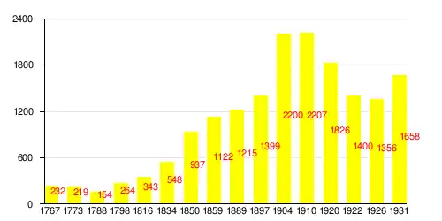 | 1767 | 1773 | 1788 | 1798 | 1816 | 1834 | 1850 | 1859 | 1889 | 1897 | 1904 | 1910 | 1920 | 1922 | 1926 | 1931 |