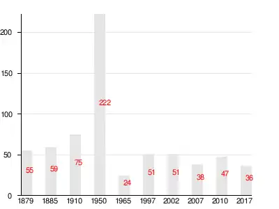 Число жителей деревни по семейным спискам 1879 г.: 24 м. п., 31 ж. п.; по приходским сведениям 1879 г.: 28 м. п., 34 ж. п.[2]