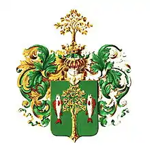 В зелёном щите золотой дуб, сопровождаемый по бокам двумя серебряными окунями с червлёными глазами, перьями и хвостами, головами вверх. Щит увенчан дворянским коронованным шлемом. Нашлемник: золотой дуб. Намёт: справа — зелёный с золотом, слева — зелёный с серебром.