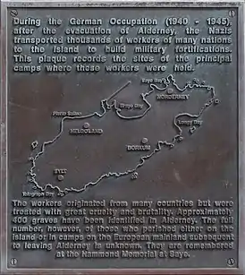 Во время Второй мировой войны Нормандские острова были единственными британскими островами, оккупированными нацистской Германией. На острове Олдерни были построены четыре концентрационных лагеря, являющихся подразделением лагеря Нойенгамме под Гамбургом. Они были названы в честь четырёх Фризских островов — Нордерней, Боркум, Зильт и Гельголанд. Заключённых Олдерни заставляли строить бункеры, укрепительные сооружения, склады для вооружения и другие военные сооружения. В трудовых лагерях Боркум и Гельголанд содержались «добровольцы» (нем. Hilfswillige), положение которых было минимально лучше, чем у узников двух других лагерей. В лагере Зильт содержались евреи, в Нордерней — угнанные из стран (Восточной) Европы и СССР, а в Гельголанде работали русские из военно-строительной организации Тодта.