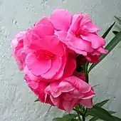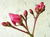 Цветки олеандра яркие, крупные, пятичленные, в щитковидных соцветиях на концах побегов[2].