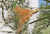 Плоды — многосемянные листовки[2], достигающие в длину примерно 10 см. Семена имеют перистые хохолки[4].