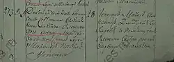 - ЦГИА СПб, ф. 19, оп. 111, д. 145, л. 414. Метрические книги церкви Успения Пресвятой Богородицы, что на Сенной.