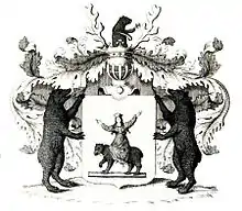 Существует легенда П. А. Оленина-Волгаря, где говорится о королевской фамилии, правившей в Ирландии — рода О' Лейнов. Легенда описывает романтическую историю чудесного спасения медведями дочери короля, брошенной своим братом в клетку с дикими зверями. Спасенная девушка переплывает на спине медведицы во Францию, где в Лотарингии встречает рыцаря Д' Оршпрунга. Они полюбили друг друга и сочетались браком. Потомки королевы перешли в Польшу, оттуда, при царе Алексее Михайловиче, в Россию, где стали называться Олениными.