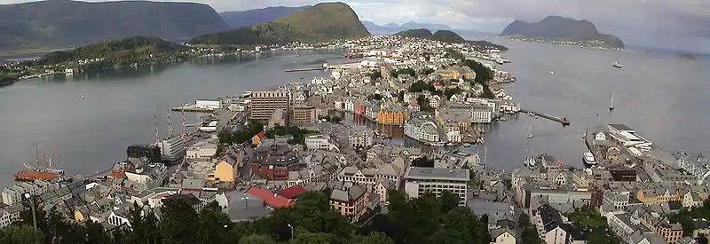 Центр города стоит на островах Аспрёй и Нёрвёй, а острова Хесса и Окснёй занимают жилые районы. Остров Эллингсёй (второй по площади) доступен только по морю или по дороге через город Скодье (Skodje), где в 1987 году был построен подводный туннель.