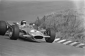 ![]() Джеки Оливер в августе 1969 года на трассе Нюрбургринг | |||||||||||||||||||||||||
