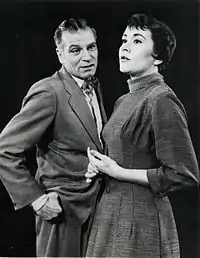 Осборн уже работал над новой пьесой «Комедиант», аллегорией постколониального упадка Британии, в центре которой был неудачливый исполнитель мюзик-холла Арчи Райс. Прочитав первый акт, Оливье попросил, чтобы его взяли на эту роль. Вот уже в течение многих лет он утверждал, что вполне мог бы быть третьесортным комиком по имени «Ларри Оливер», и иногда играл этого персонажа на вечеринках. Первый спектакль был дан 10 апреля 1957 года в театре Ройал-Корт. За беззастенчивым фасадом Арчи скрывается опустошённость, и Оливье уловил оба аспекта, переходя, по словам биографа Энтони Холдена, «от безвкусной комической рутины к моментам самого мучительного пафоса»[180]. Постановка была перенесена из Ройал-Корт в театр Палас в сентябре 1957 года; после этого она гастролировала и снова вернулась в Палас[181]. Во время гастролей роль дочери Арчи — Джин, исполняли три разные актрисы. Одной из них была Джоан Плоурайт, с которой Оливье начал отношения, продолжавшиеся до конца его жизни[Прим 12]. Оливье говорил, что роль Арчи заставила его «снова почувствовать себя современным актёром»[183]. Найдя подходящую для себя авангардную пьесу, он, как заметил Осборн, намного опередил Гилгуда и Ричардсона, которым понадобилось более десяти лет, чтобы последовать его примеру[184][Прим 13]. Для них первыми значительными успехами на поприще современной пьесы стали «Сорок лет спустя» Алана Беннетта (Гилгуд в 1968 году) и «Дом» Дэвида Стори (Ричардсон и Гилгуд в 1970 году)[186][187].