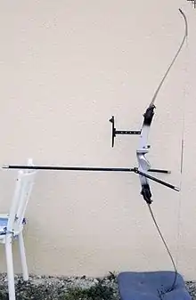 Олимпик является разборным луком, состоящим из рукоятки, плеч, тетивы, стабилизатора и прицела.