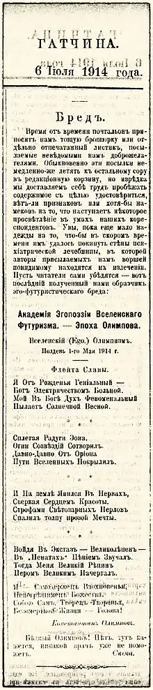 - Фомина Л. Н. Типы и функции новообразований в поэзии эгофутуристов (недоступная ссылка). Дата обращения: 11 февраля 2011. Архивировано 20 декабря 2010 года.