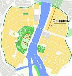 ![]() Вид на Оловянку с насыпи моста Александра Невского | |