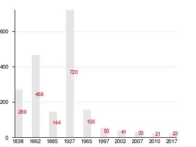 | 1838 | 1862 | 1885 | 1927 | 1965 | 1997 | 2002 |