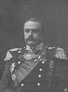 Чины: поручик (1877), подпоручик гвардии (1878), поручик (1882), штабс-капитан гвардии с переименованием в капитаны Генерального штаба (1882), подполковник (1889), полковник (за отличие, 1893), генерал-майор (за отличие, 1903), генерал-лейтенант (за отличие, 1909), генерал от инфантерии (1915).