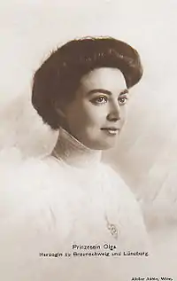 Ольга, принцесса Ганноверская, Великобританская и Ирландская (нем. Olga Adelaide Louise Marie Alexandrina Agnes Prinzessin von Hannover und Cumberland; 11 июля 1884[1], Гмунден, Верхняя Австрия — 21 сентября 1958[1], Гмунден, Верхняя Австрия) — член Ганноверского дома, дочь Эрнста II Ганноверского и Тиры Датской, внучка короля Кристиана IX.