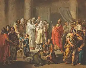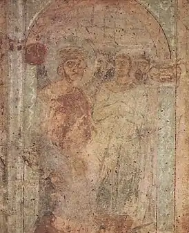 ![]() Константин VII Порфирогенет и княгиня Ольга в 955 году на константинопольском ипподроме. Фреска киевского Софийского собора. XI век. | |