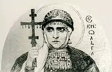 Княги́ня О́льга (др.-сканд. Helga[3]), в крещении — Еле́на (около 893[4]/920[1][2] — 969[5]) — княгиня, правившая Киевской Русью с 945 до 960 года в качестве регента при малолетнем сыне Святославе, после гибели её мужа, киевского князя Игоря Рюриковича. Первая из правителей Руси, которая приняла христианство, святая равноапостольная Русской православной церкви; её память празднуется 11 (24) июля шестеричным богослужением и в Соборах Киевских, Псковских и Волынских святых.