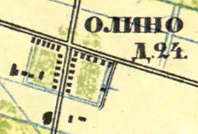 ОЛИНО — деревня удельная при пруде и колодце, число дворов — 24, число жителей: 44 м. п., 74 ж. п.[5] (1862 год)