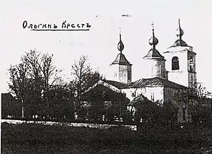Близ оной каменная церковь погоста Ольгина Креста во имя Святителя Николая Чудотворца. (1838 год)[3]