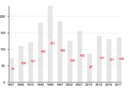 В 2007 году в деревне Ольеши Заборьевского сельского поселения проживали 155 человек, в 2010 году — 87[12][13].