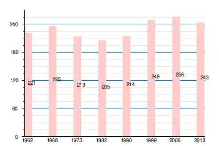 | 1962 | 1968 | 1975 | 1982 | 1990 | 1999 | 2006 | 2008 | 2011 | 2013 |