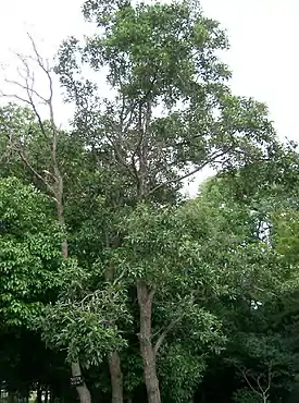 Дерево высотой 6—10 (до 25) м высотой. Крона яйцевидная, диаметром 0,7 м. Молодые ветви опушённые; годовалые — голые, светло-оливковые или красновато-бурые, с ясно выраженными чечевичками[5].