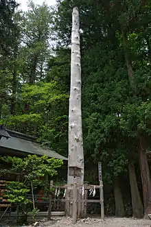 Омбасира (яп. 御柱) — фестиваль, проводящийся раз в шесть лет[1] в районе озера Сува в префектуре Нагано, Япония. Целью фестиваля является символический ремонт храма Сува-тайси. «Омбасира» дословно переводится как «почётные колонны». Фестиваль Омбасира проводится на протяжении 1200 лет. Проводится один раз в шесть лет, в годы Обезьяны и Тигра китайского календаря, однако местные жители могут сказать «раз в семь лет», из-за традиционного японского обычая включать текущий год при подсчёте продолжительности времени. Омбасира длится несколько месяцев, и состоит из двух сегментов, Ямадаси и Сатобики. Ямадаси традиционно проходит в апреле, Сатобики проводится в мае. «Ямадаси» буквально означает «выходит из горы». Перед этой частью фестиваля вырубаются огромные деревья в ходе церемонии синто при помощи топоров и тёсел, специально изготовленные для одноразового использования. Брёвна оформляют в красных и белых регалиях, это традиционные цвета синтоистских церемоний, и крепятся на верёвки. Во время Ямадаси команды мужчин едут вниз на брёвнах с горы к четырём святыням Сува-тайси. Всего должно быть доставлено 16 брёвен. Такая езда является травмоопасной, нередки летальные исходы.