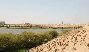 Расположен на реке Белый Нил, на высоте 390 м над уровнем моря[3]. Входит в городскую агломерацию с Хартумом и Северным Хартумом.