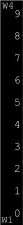 Колдун: привязанная к цвету клеток фигура, которая перепрыгивает на клетки {1,3} или {3,1} в любом направлении, или на одну клетку диагонально. Белый колдун со стороны короля может начать игру с хода Wj2. Ходы чёрного колдуна обозначены на диаграмме черными точками. Он может взять белого коня.