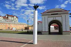 ![]() Памятный знак «Держава»: здесь был заложен первый камень при основании Омской крепости. Скульптор проекта В.Трохимчук, 1997 | |